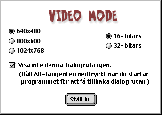 Första gången du kör Cro-Magnon Rally, kommer du att få upp dialogrutan Video Mode: