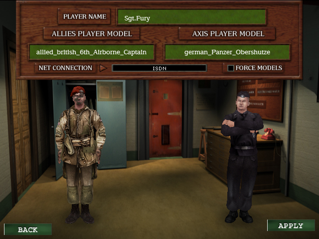 To select a different Allied model, click ALLIES PLAYER MODEL and select a new model from the drop-down list.